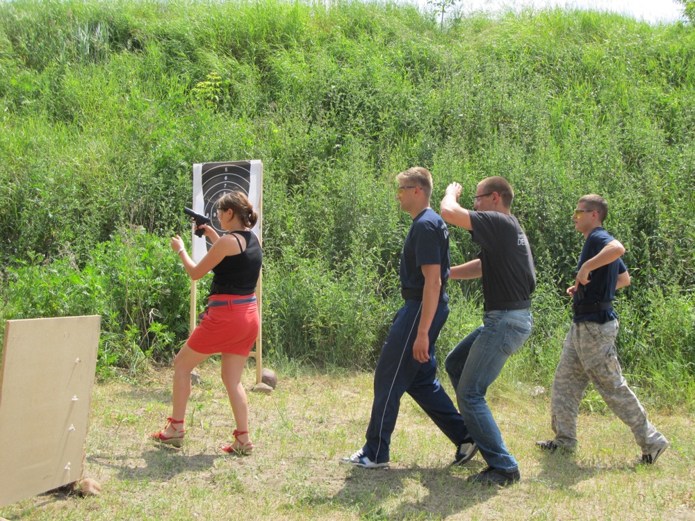 - strzelania sytuacyjnego z broni palnej bojowej (pistolet) w przypadku ataku na osobę chronioną z różnych kierunków w szykach ochronnych od 1/1 do 5/1,