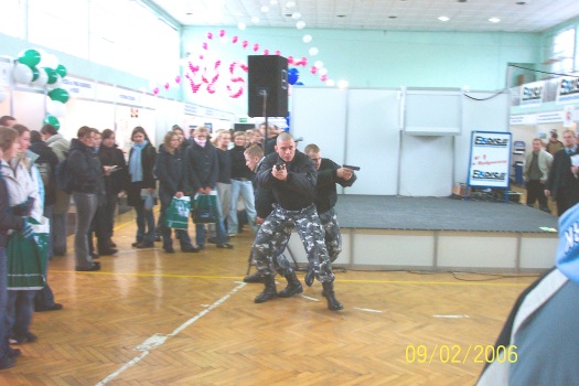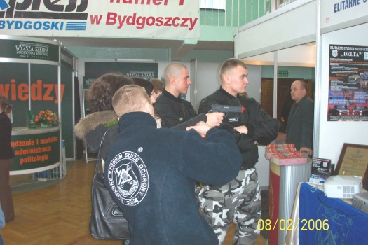 8 i 9 LUTEGO 2006r. po raz kolejny prezentowaliśmy nasza ofertę edukacyjną na Targach Edukacji i Pracy „START 2006”. Podczas imprezy targowej goście mogli obejrzeć profesjonalne pokazy samoobrony i technik interwencji w wykonaniu słuchaczy szkoły oraz sprawdzić swe umiejętności na specjalnym symulatorze do nauki strzelania.