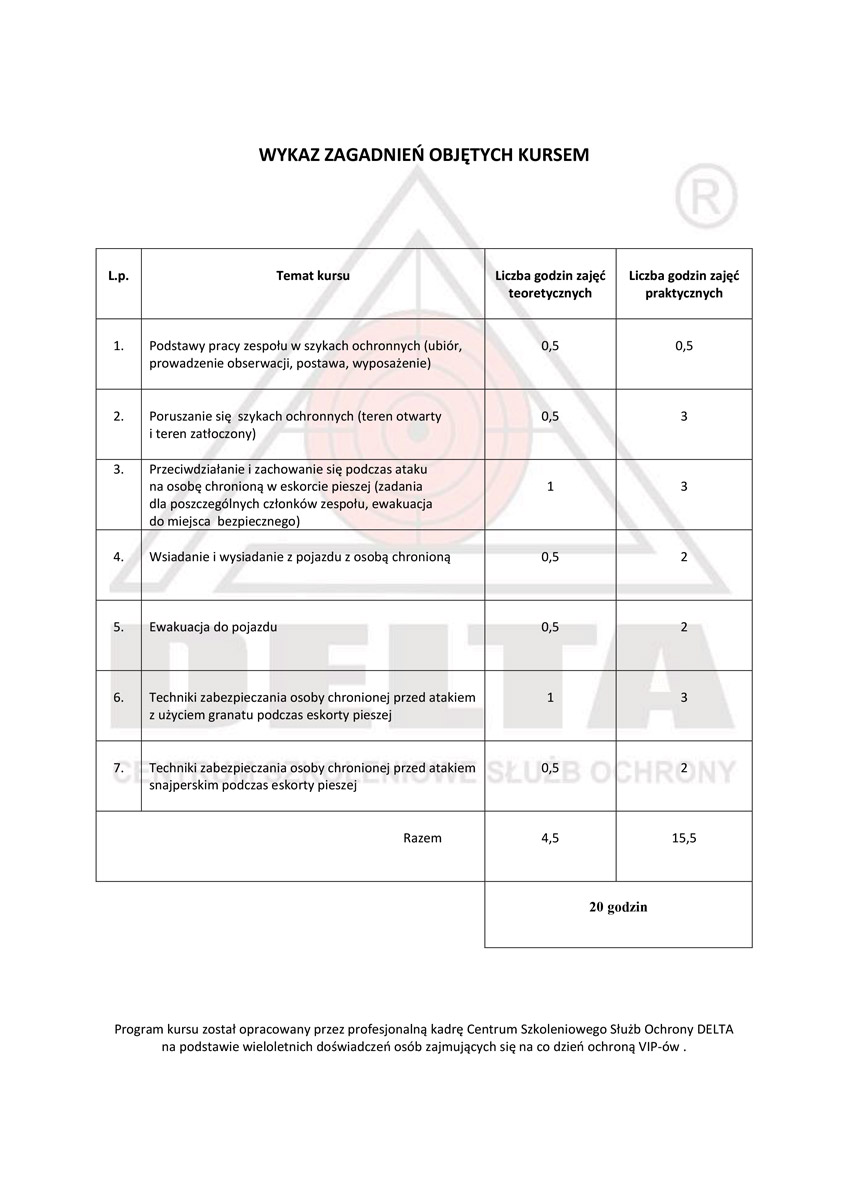 Nasza szkoła gwarantuje najwyższe kwalifikacje oraz profesjonalne przygotowanie do pracy w branży ochrony osób i mienia. Ponadto zapewniamy pełne przygotowanie w zakresie uzyskania uprawnień do pracy z bronią palną krótką i długą.